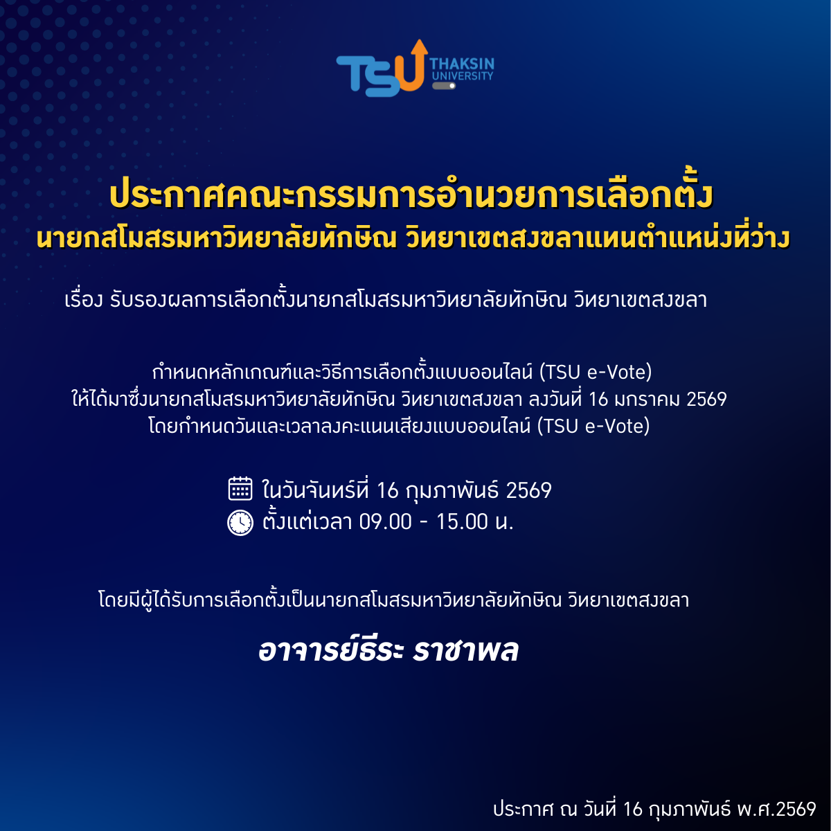 ประกาศ มหาวิทยาลัยทักษิณ